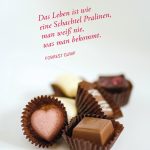 Lebensweisheiten und Sprüche: Das Leben ist…das Zitat aus Forrest Gump strahlt Lebensmut und Zuversicht aus, man weiß zwar nicht welche Praline man bekommt, aber man bekommt eine Praline, also etwas Schönes.