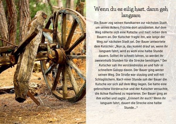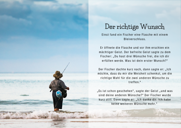 1,45 € – 13,00 €Lebensweisheiten und Sprüche: Gib einem Hungernden einen Fisch…dieses Zitat von Laotse lehrt und die Kraft der Hilfe zur Selbsthilfe. Mehr Lebensweisheiten finden Sie unter www.geschichtenkarten.de oder unter www.hospiz-verlag.de/produkte/karten
