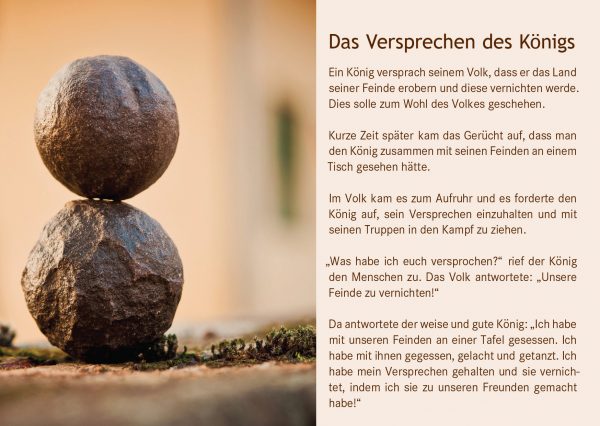 1,45 € – 13,00 €Lebensweisheiten und Sprüche: Wer einen Fluss überquert…das berühmte Zitat von Mahatma Gandhi möchte zum Ausdruck bringen, dass wir um eine Veränderung und/oder eine Verbesserung herbeiführen zu können, auch die andere Seite berücksichtigen müssen. Mehr Lebensweisheiten und Sprüche unter www.geschichtenkarten.de oder www.hospiz-verlag.de/produkte/karten