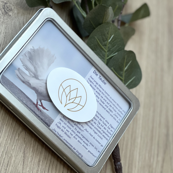 15,50 € – 18,00 €Kleine und große Weisheiten auf 12 liebevoll gestalteten Postkarten zum Thema “Zuversicht”. Lassen auch Sie sich inspirieren oder inspirieren Sie andere – mit einer Karte und einer wundervollen Geste. enthaltene Motive: 1, 9, 10, 50, 58, 60, 105, 106, 108, 109, 240, 225 Auch erhältlich in einer Metallbox für…
