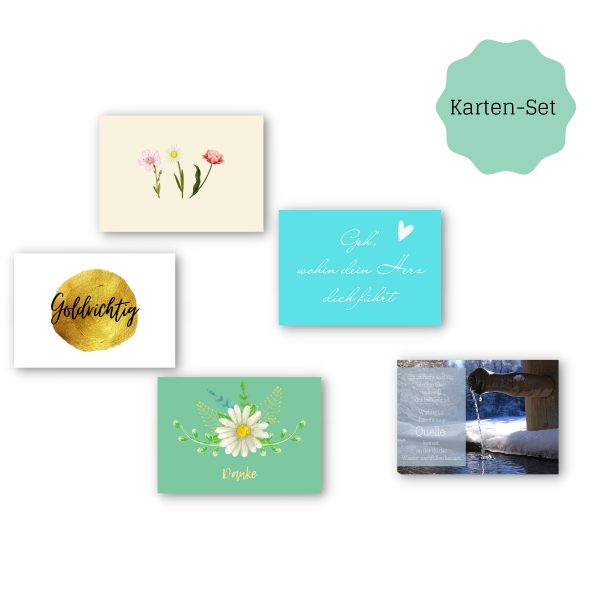 11,00 € – 14,50 €Kleine und große Weisheiten auf liebevoll gestalteten Postkarten im 10er Set. Lassen auch Sie sich inspirieren oder inspirieren Sie andere – mit einer Karte und einer wundervollen Geste. enthaltene Motive: 208, 209, 213, 225, 226, 227, 233, 234, 235, 236 Auch erhältlich in einer Metallbox für zusätzlich 2,50 Euro